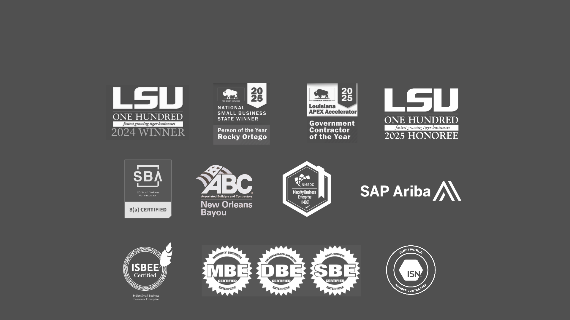 Red Bison Services, LLC is a Licensed and Insured Construction Consultant/Contractor servicing Public, Private, and Federal Government clients. As a Native American owned firm, RBS is Certified SBA 8(a), DOTD UCP DBE, and SRMSDC DBE.